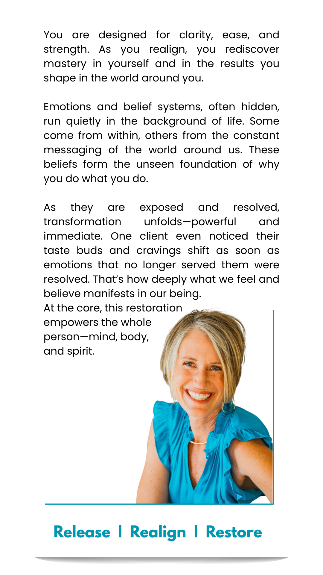 “I found in my own life that I didn’t even realize that certain emotions and feelings were causing a block to my healing and growth. Once these areas were released healing and growth occurred. Anyone who’s having repeating patterns replay in their life needs a session with Beth—it’s life changing.”